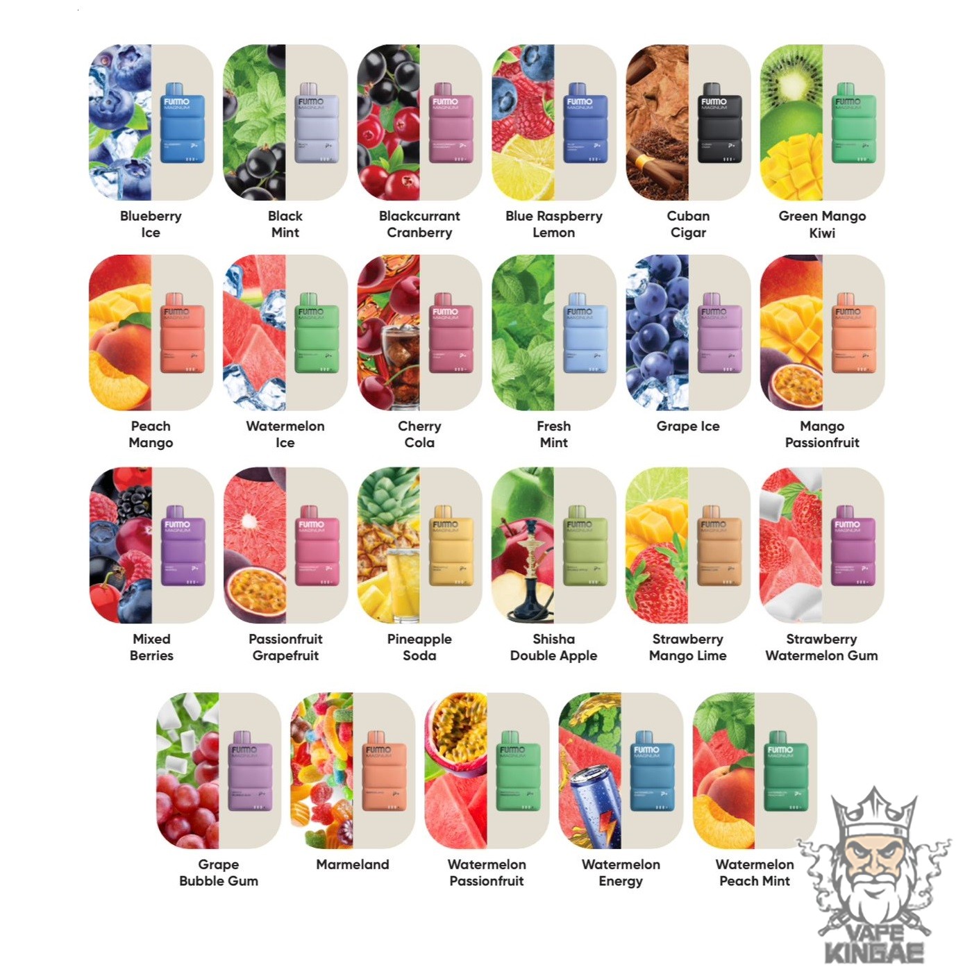 With 19 incredible flavors to choose from, your biggest challenge will be picking a favorite. The Fummo Magnum’ flavor lineup is curated to delight every type of vaper.