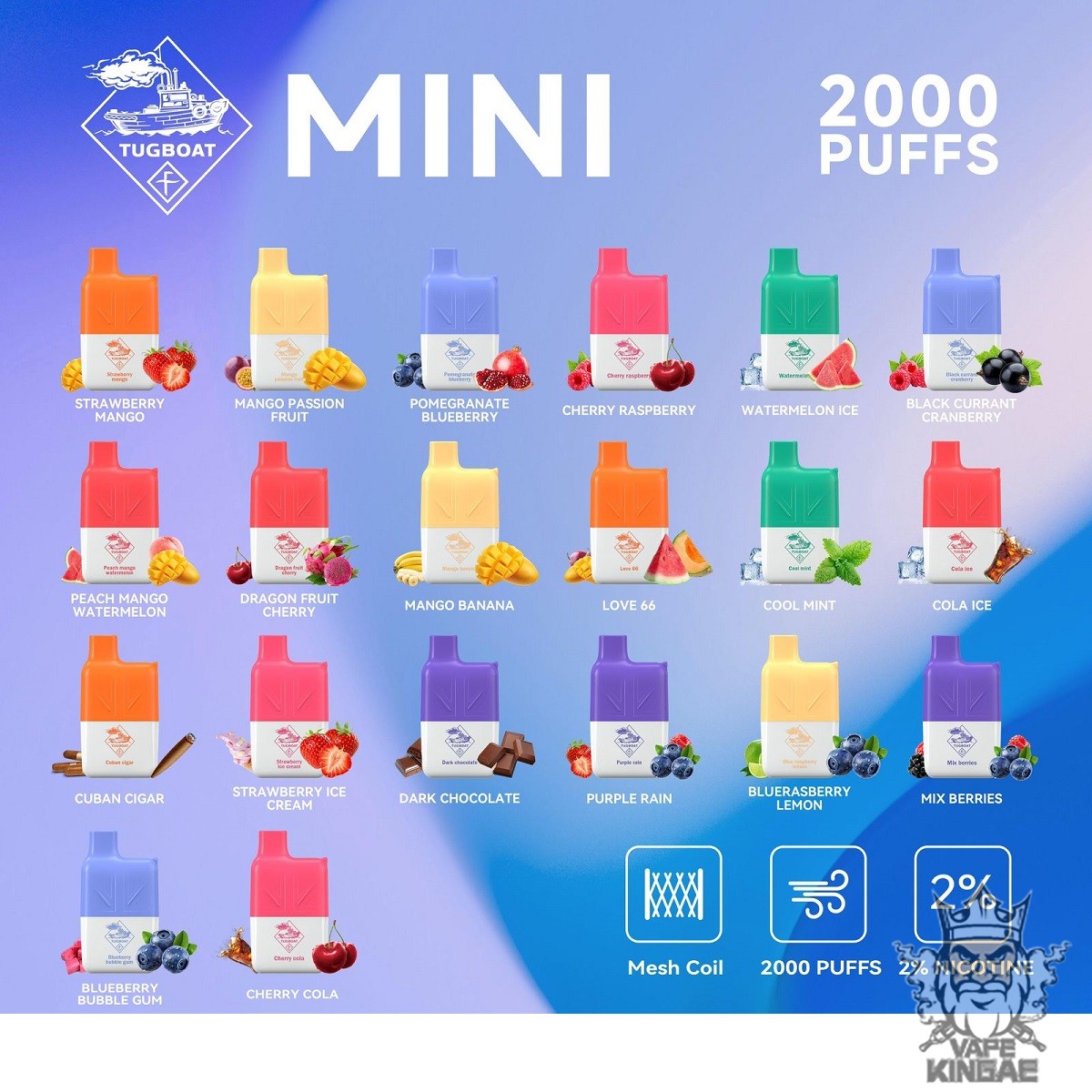 Key Features Of Tugboat Mini 2000 Puffs Disposable Vape: